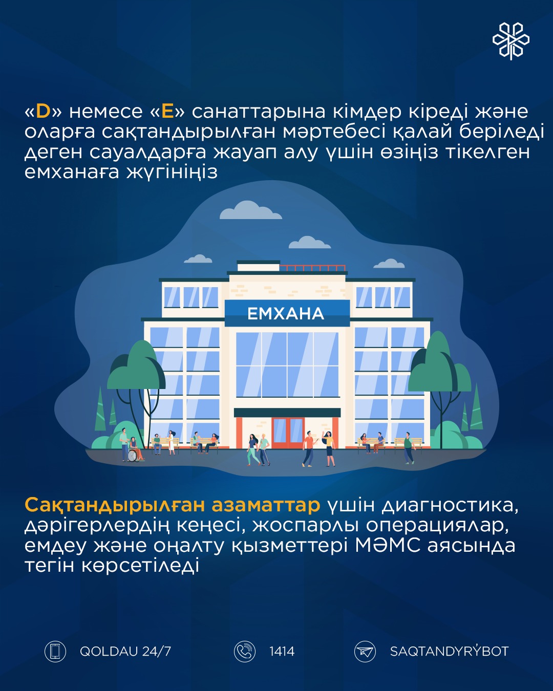 Барлық сақтандырылған азаматтар МӘМС бойынша ем, дәрігер кеңесі және қажетті дәрі-дәрмектерді тегін алады.